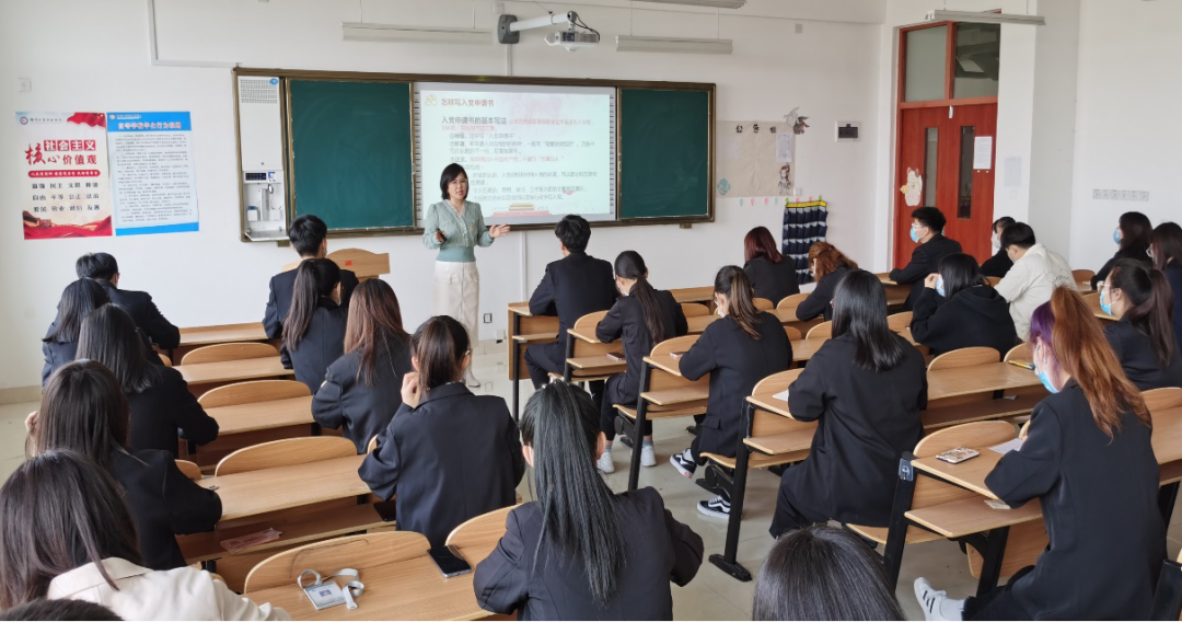 苏老师与同学们一起观看了建党百年主题视频《少年》。通过观看,燃起了同学们深深的爱党爱国之情。结合视频内容,苏老师强调了端正入党动机的必要性。要树立崇高的共产主义理想,遵守党的纲领和党的章程。要树立自我牺牲精神,不断充实磨练自己。在行动上努力实践,积极参加各类活动,注意生活学习细节,争做同学中的先锋,学生干部中的模范,努力达到加入中国共产党的条件。苏老师介绍了党章规定的申请入党的条件,并对入党手续和入党流程进行了详细的说明和讲解。特别强调了入党申请书的规范书写。同学们认真记录有关要点,纷纷表示今天的讲座收获很大。