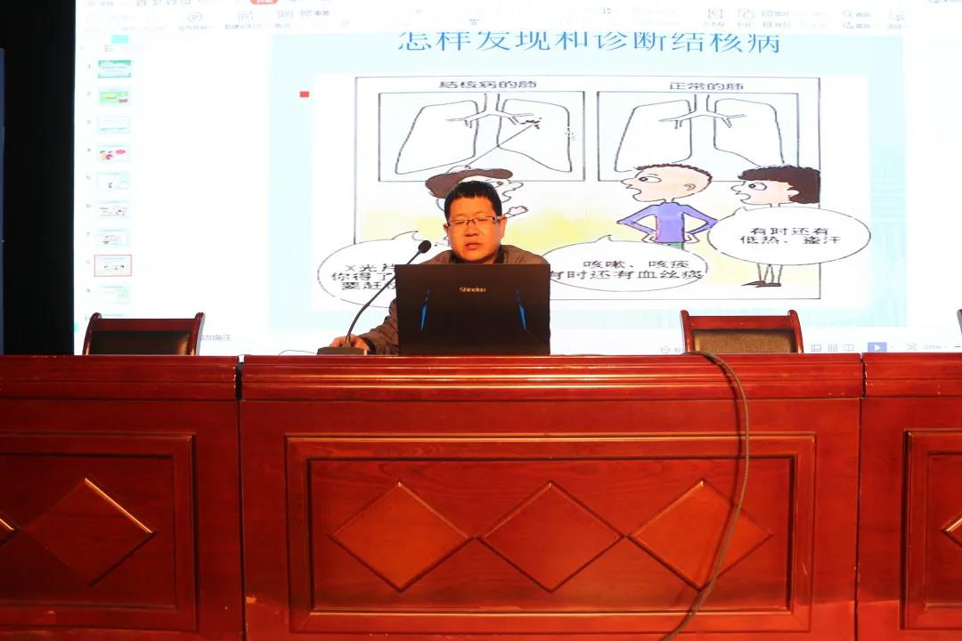 刘勋锋大夫通过用PPT的方式,讲解了什么是结核病、结核病的传播途径和相关症状、结核病疫情及特点、如何做好学校结核病防治工作,以及如果身边同学得了结核病应如何应对和国家现有结核病治疗政策等。