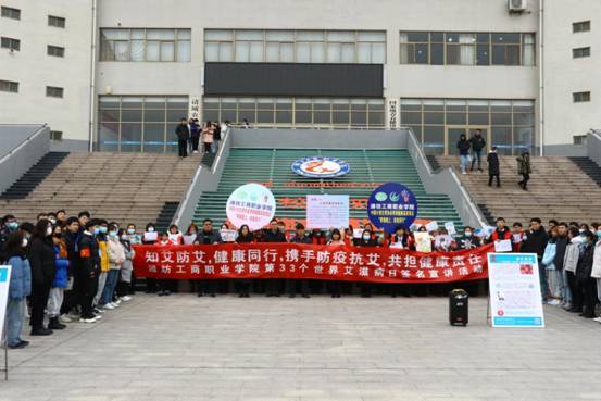 同时集体宣誓,“作为新时代大学生,我们一定要积极加入防艾志愿者队伍中,参与到艾滋病防控的宣传工作中,从自身做起,携起手来,向‘零’艾滋迈进,为促进大学生身心健康发展助力”。学生处处长王卫、团委副书记乔俊杰和心理健康教育中心全体老师也加入到主题签名和集体宣誓的队伍中。展现了我院师生浓重的防范疫情的意识、与艾滋抗争到底的决心。