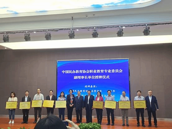 25日,参加职业教育质量提升现场会,听取中国民办教育协会会长王佐书、人力资源和社会保障部原党组书记、常务副部长杨志明以及其他专家学者、企业家关于职业教育人才培养及人工智能方面的主题发言,期间参加授牌仪式并接受学校副理事长单位牌匾。