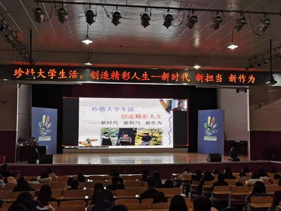 11月26日下午,我校金融财会学院《珍惜大学生活,创造精彩人生——新时代,新担当,新作为》专题讲座在潍坊工商职业学院第一报告厅举行。本次讲座由公共基础部主任、党支部书记王桂珍老师担任主讲,旨在督促同学们勇于担当、锐意进取,成为有理想、有抱负的新时代大学生。