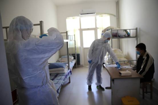 公寓值班辅导员将疑似学生迅速转移至所在楼层临时留观室安抚并建档,联系留观组值班员到现场初诊。
