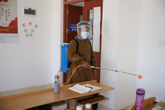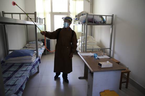 后勤服务人员对同宿舍、同楼层、同公寓楼开展消杀作业。