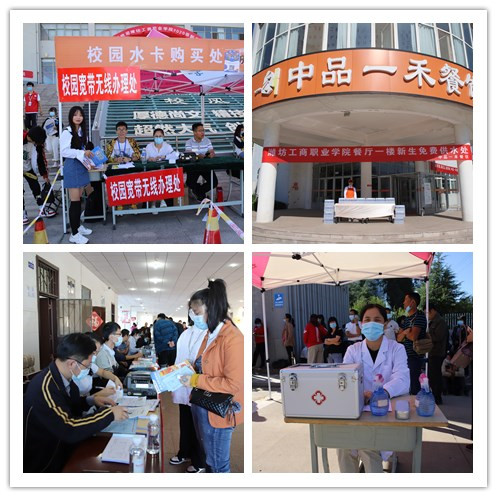 学校医务室、餐厅、饭卡水卡处、财务处等后勤部门为学生设置了服务处,尽心尽力为学生做好各项服务工作,保障新生的生活基本需求。