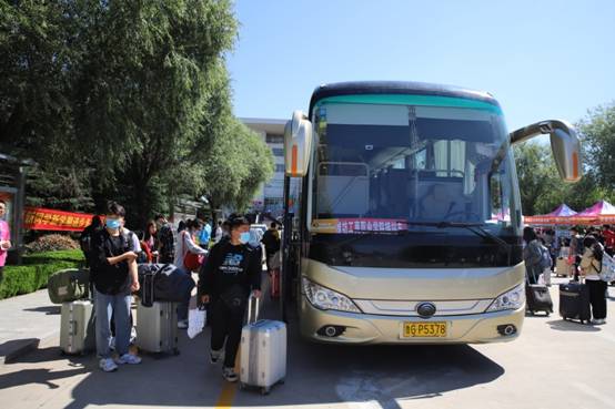学校接待工作全面细致,专门调配多辆大巴车在火车站、汽车站迎接来自全国各地的新生,将学生送到校内并将家长送回车站。