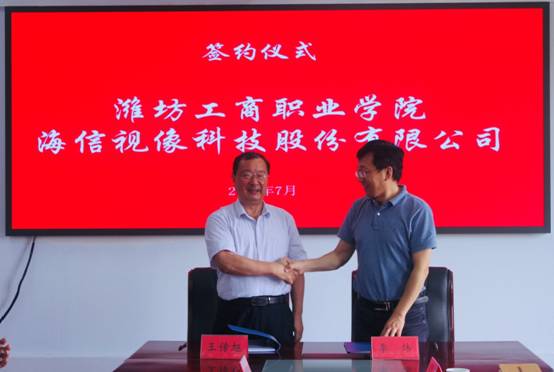 2020年7月27日上午,海信集团有限公司与潍坊工商职业学院战略合作签约仪式在学校图书信息楼516会议室隆重举行。校长王传旭、党委书记郑志松、副校长周平、副校长唐德良以及相关院系处室领导,海信集团海信视像科技股份有限公司助理副总裁、制造中心总经理李炜等出席签约仪式,唐德良副校长主持本次仪式。