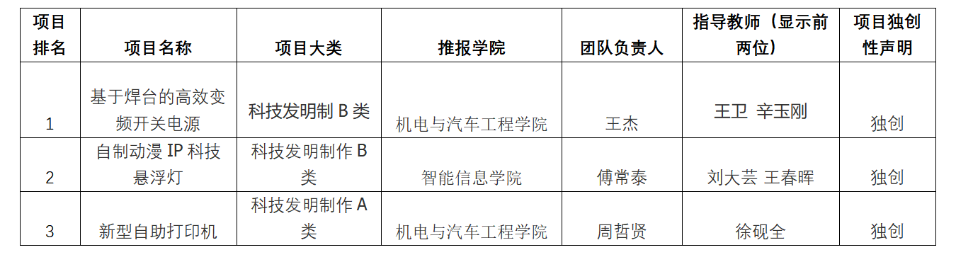 科技作品竞赛校赛胜出拟推荐省赛名单的公示