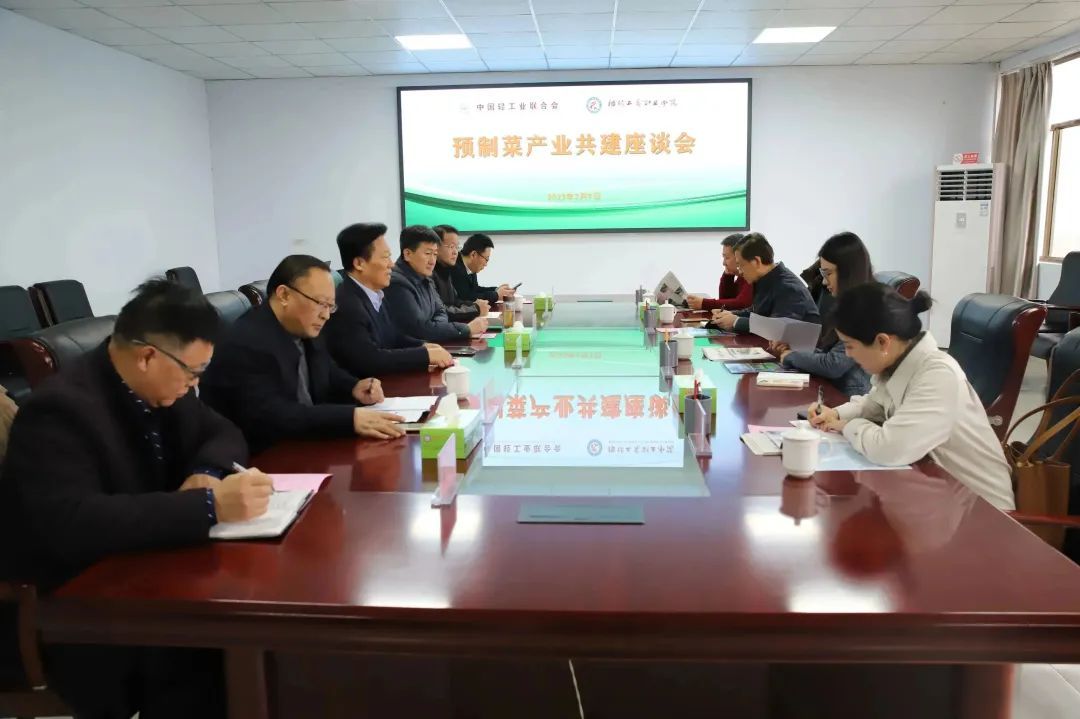 双方就预制菜职教集团建设、预制食品产业集群共建培育及成立中国轻工联预制食品分会等事宜进行交流。