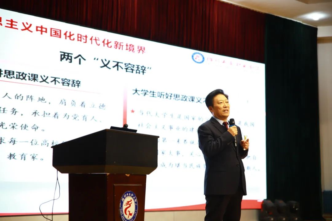 张校长从“两个义不容辞”入手,在“内涵博大精深”、“绽放真理光芒”、“彰显实践伟力”三个方面展开了精彩的论述。