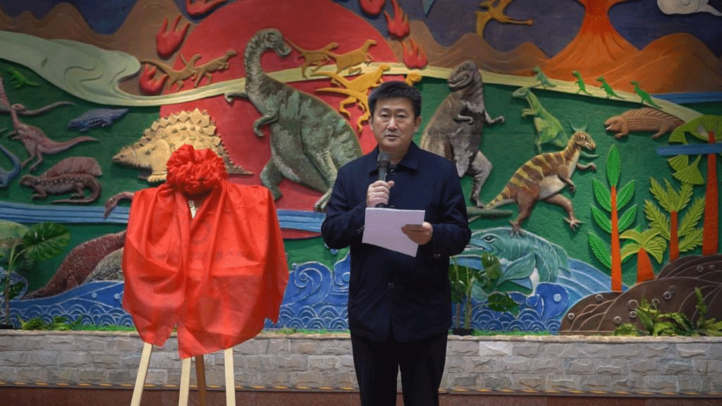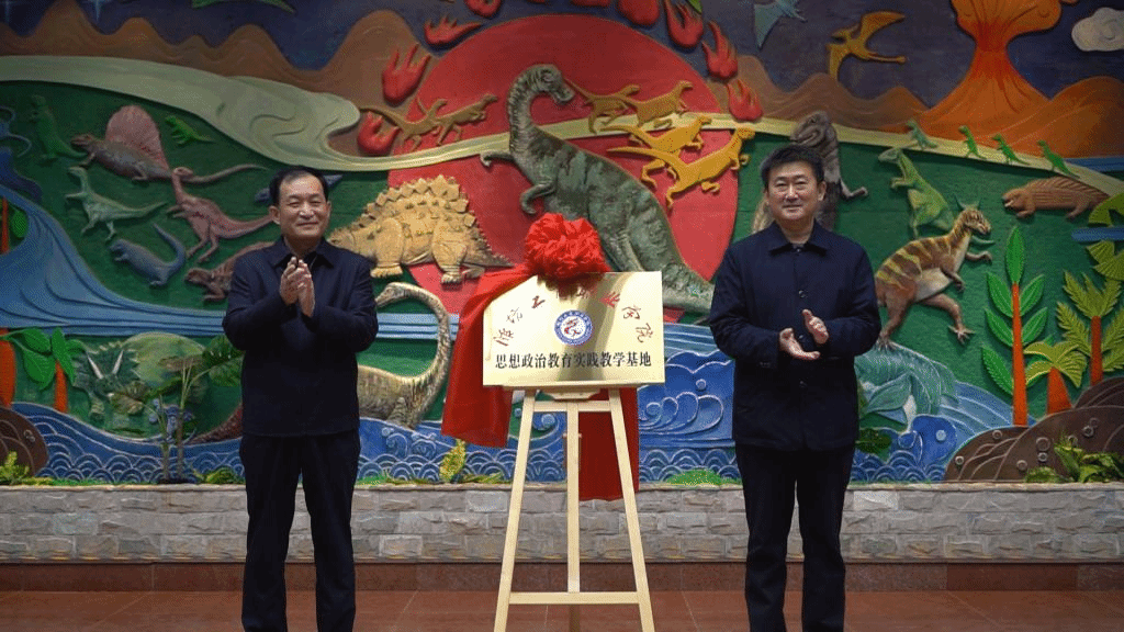 代表发言后,孙业君与郑志松共同为教育基地揭牌。仪式结束后,全体师生一起参观了诸城市恐龙博物馆,并在恐龙文化大讲堂共同学习和体验灿烂悠久的恐龙文化。