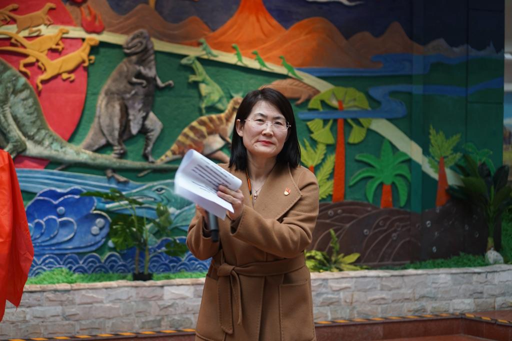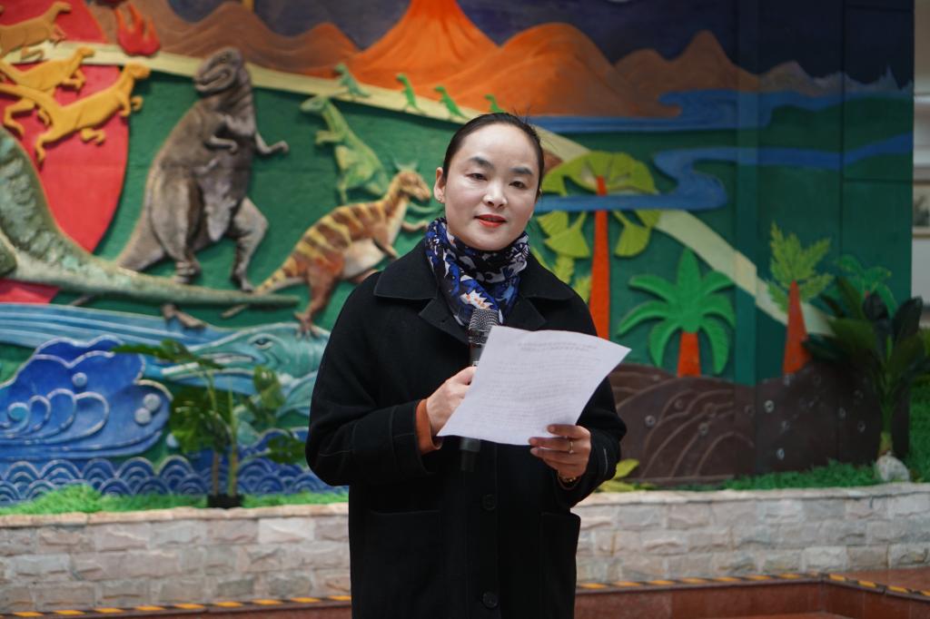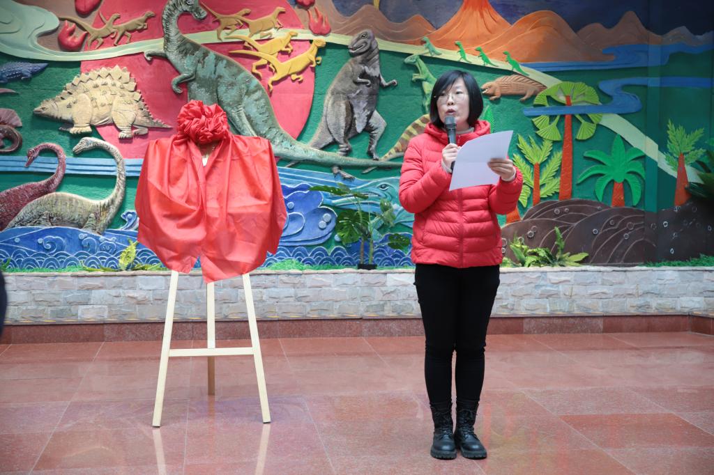 诸城市恐龙博物馆馆长王秀珍在讲话中表示,要充分利用博物馆的资源优势,在加强学生思想政治教育,培育时代新人上发挥教育基地的积极作用。