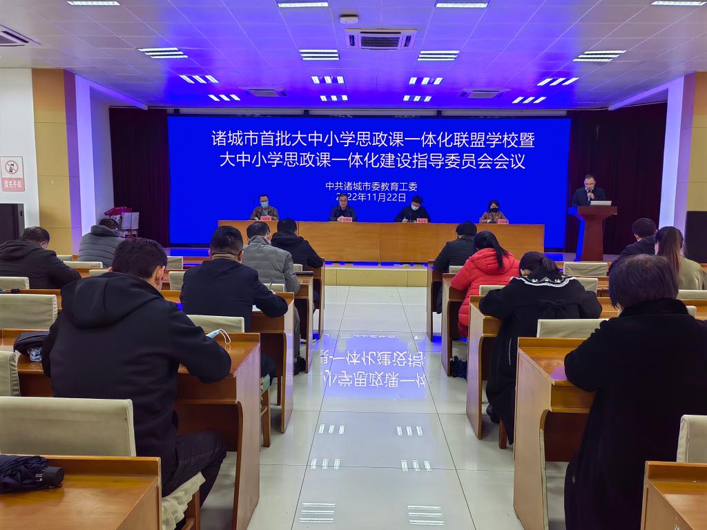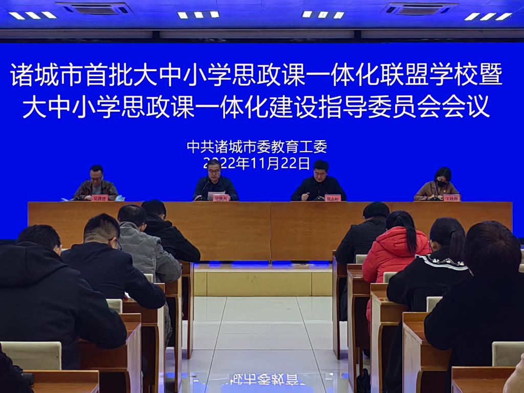 诸城市教体局党组成员吴洪杰,教育科学研究院副院长吴洪建,潍坊工商职业学院执行校长、党委副书记郑志松,首批大中小学思政课一体化联盟学校分管领导,各学段教学指导委员会成员与会。会议由市教体局组织人事科王金涛主持。