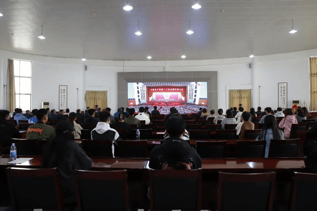 党的二十大是在全党全国各族人民迈上全面建设社会主义现代化国家新征程、向第二个百年奋斗目标进军的关键时刻召开的一次十分重要的大会。对于引导党员干部群众深入学习贯彻习近平新时代中国特色社会主义思想具有重大意义,在观看直播现场,广大师生边看边做好记录,不时以热烈的掌声回应大会精彩报告。