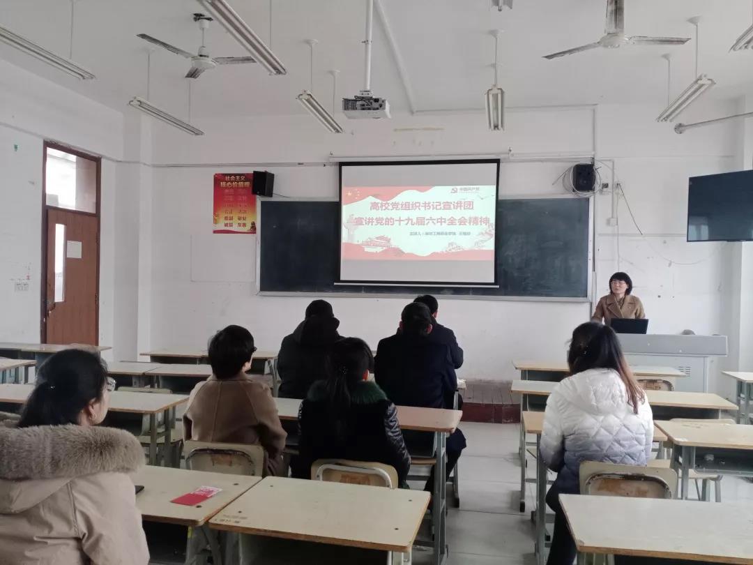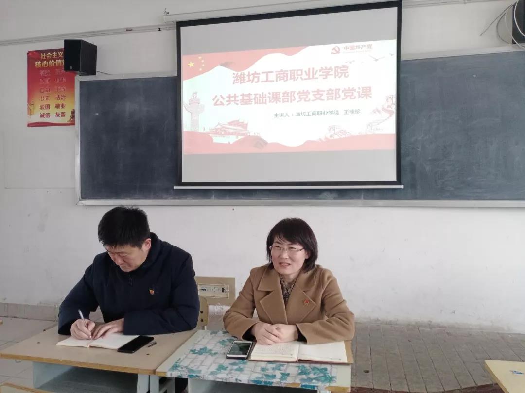 12月16日,党委书记郑志松同志和公共基础课部党支部全体党员,听取了潍坊市高校党组织书记宣讲团成员、公共基础课部党支部书记王桂珍对党的十九届六中全会精神的宣讲。