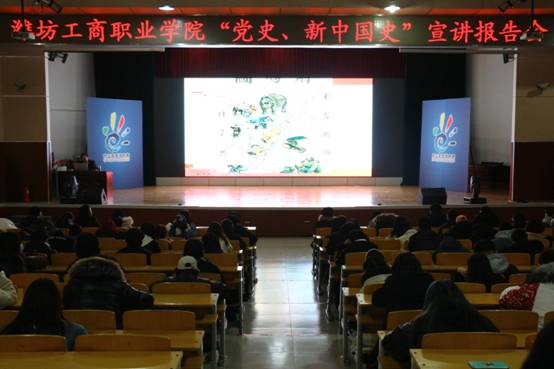 按照主题教育开展计划,11月30日下午,潍坊工商职业学院在第一报告厅举办“党史、新中国史”宣讲报告会。本次宣讲会邀请到诸城市委党校校委委员、教研室主任张茂辉教授为大家做专题报告。各二级学院学生会主席、各班班长、团支书参加了此次学习活动。