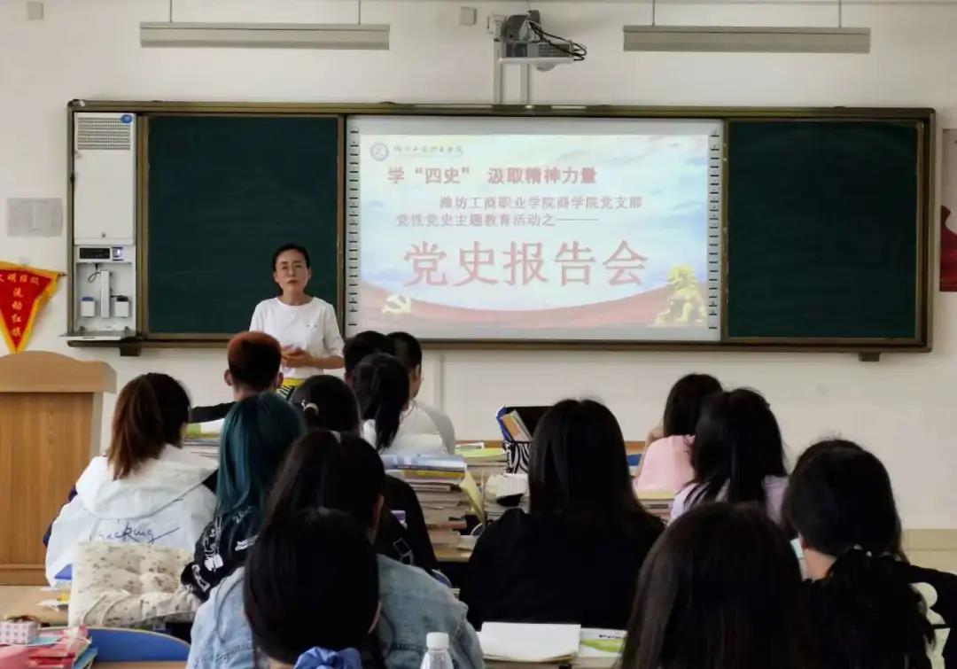 我校商学院党支部谢瑞凤同志以“学习四史精神,书写奋斗史诗”为主题,从“四个历史是什么”“学习四史精神的意义”到“大历史观的学习方法”,向师生们详细阐述了中国共产党奋斗历史和心路历程,并对本支部“四史”学习教育作了动员和部署。结合革命先辈们的实践案例,回顾了中国共产党人“浴血奋斗”、“艰苦奋斗”、“团结奋斗”和“复兴奋斗”的奋斗历史。