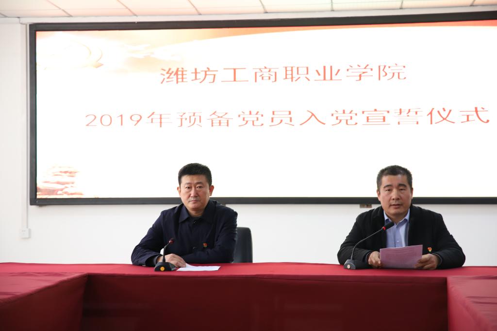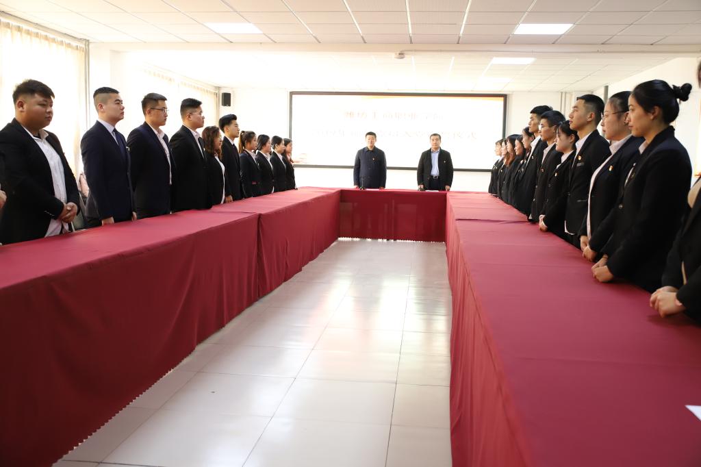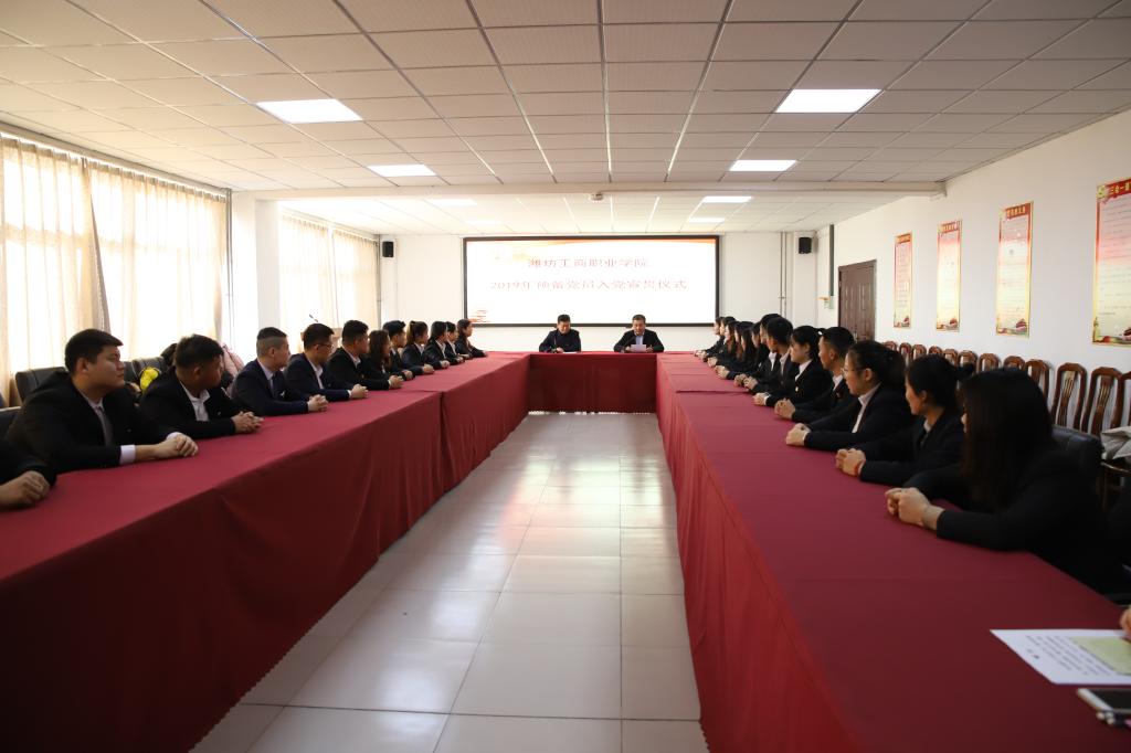 2019年12月27日上午9:30,潍坊工商职业学院党委2019年预备党员入党宣誓仪式在图书楼321会议室举行。刘国庆书记主持,郑志松书记做重要讲话,新发展的27名预备党员及党群工作部工作人员参加。