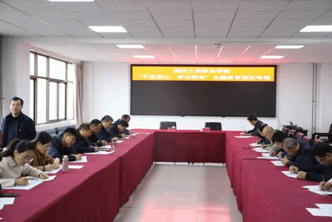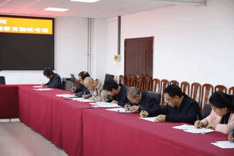2019年11月23日上午,潍坊工商学院“不忘初心、牢记使命”主题教育测试考场在图书信息楼321会议室举行。学院领导、党委委员及各支部书记参加本次测试。教育工委第六指导组组长侯建农同志和副组长刘冲同志监考。
