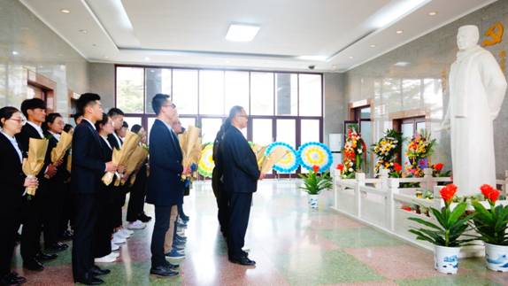 随后,师生们乘车来到了王尽美烈士纪念馆。全体师生面向烈士雕像再次庄严宣誓,并向烈士敬献鲜花。