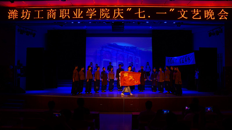 623日晚,为纪念建党96周年,大型音乐情景剧《誓言》文艺汇演在潍坊工商职业学院图书信息楼第一报告厅隆重举行。此次演出是由中共诸城市委宣传部、市文化广电新闻出版局主办,诸城市艺术团、潍坊工商职业学院共同演出的一场红色文化主题教育晚会。院长王传旭、党委书记郑志松等学院领导,学院全体党员、预备党员、入党积极分子以及教师代表、学生会成员代表800余人观看了演出。