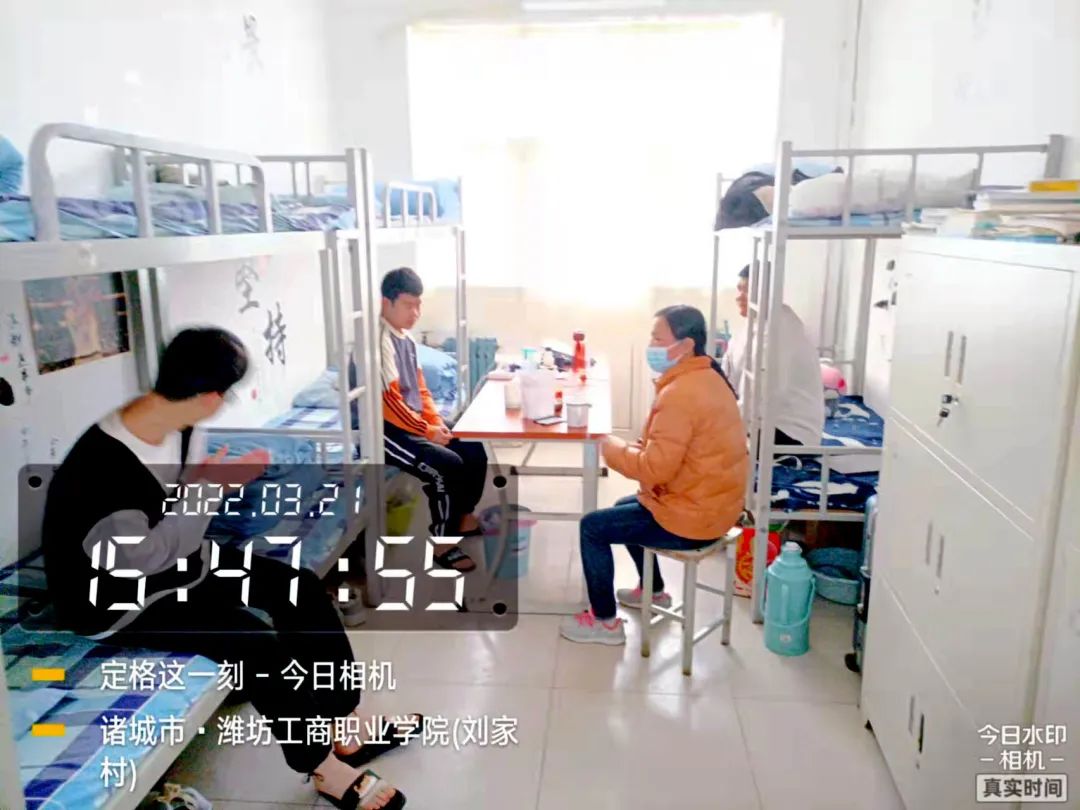 为了管理好班级,每个宿舍我都安排了一名认真负责的同学,每天用水印相机拍照,把宿舍的卫生情况、同学们的学习情况及时地发到微信群里,及时跟进。对于表现好的及时表扬,发挥榜样示范作用。在检查宿舍时会经常跟同学们说说话,聊聊天,随时掌握同学们的心理状态。在这个特殊时期,我们彼此的心,比平常更加贴近了。
