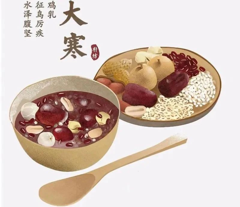 糯米饭,在广东,大寒来临前,家家户户会煮上一锅香喷喷的糯米饭,拌入腊味、虾米等食材。还有春卷,安徽安庆有大寒炸春卷的习俗。还有腊八粥,古代人们相信腊八粥具有驱邪避疫的功效,祈求来年平安健康,远离疾病和灾难。还有腌制腊味佳肴等。