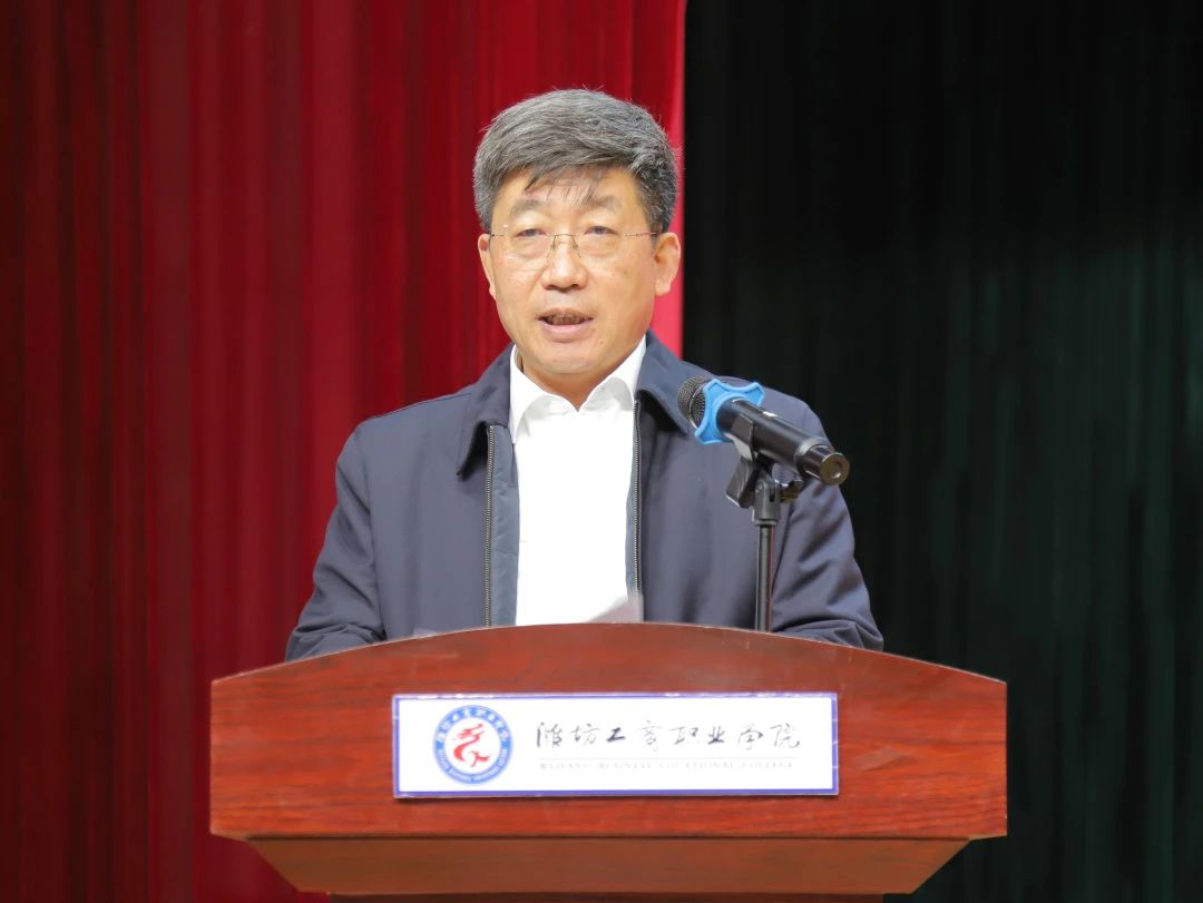 诸城市政协党组成员管常青致辞,他强调,舜帝文化万里行活动走进潍坊工商职业学院,为广大师生提供了一个深入了解舜帝文化、学习中华传统美德的良好平台,有助于引导同学们树立正确的价值观,培养高尚的道德情操。