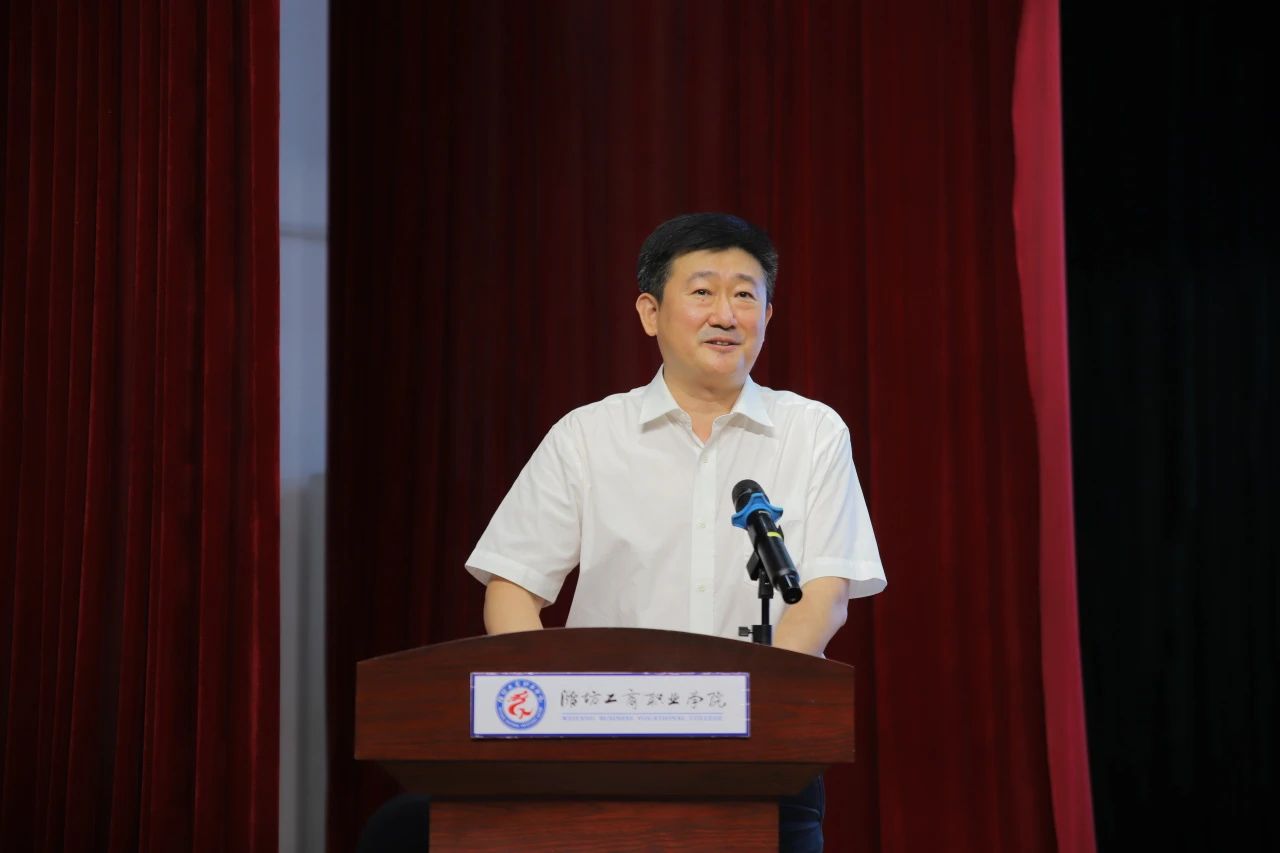 党委书记葛国文以《注重对学生教育引导,努力建设职业教育“双高”学校》为主题作报告。葛书记在报告中指出教育引导在职业教育“双高”计划中的核心作用,提出教育管理并举策略,倡导以学生为中心的教育理念,强调课程思政的重要性。