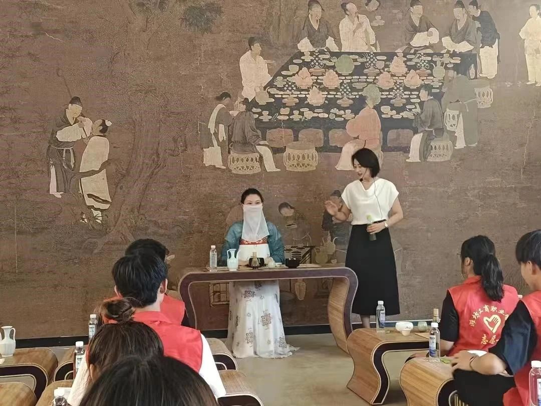志愿者们还与基地负责人进行了深入交流,了解了茶产业的发展现状和前景,深受启发,决心将创新精神和实干精神带回学校,为乡村振兴贡献力量。此外,茶艺师带领志愿者们体验了从采摘到制作茶叶的全过程,让他们在实践中学习,增长了见识,锻炼了实践能力和团队协作能力。