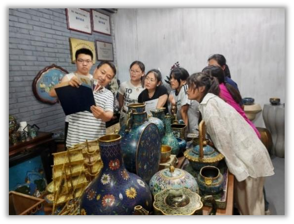 7月3日,师生们在北京珐琅厂受到了董艳娜总经理的热情接待,并在中国景泰蓝艺术博物馆深入了解了景泰蓝的发展历史和工艺变化。师生们还观摩了景泰蓝的制作过程,深刻感受到了景泰蓝设计大师和匠人们对传统文化的坚守和创新。