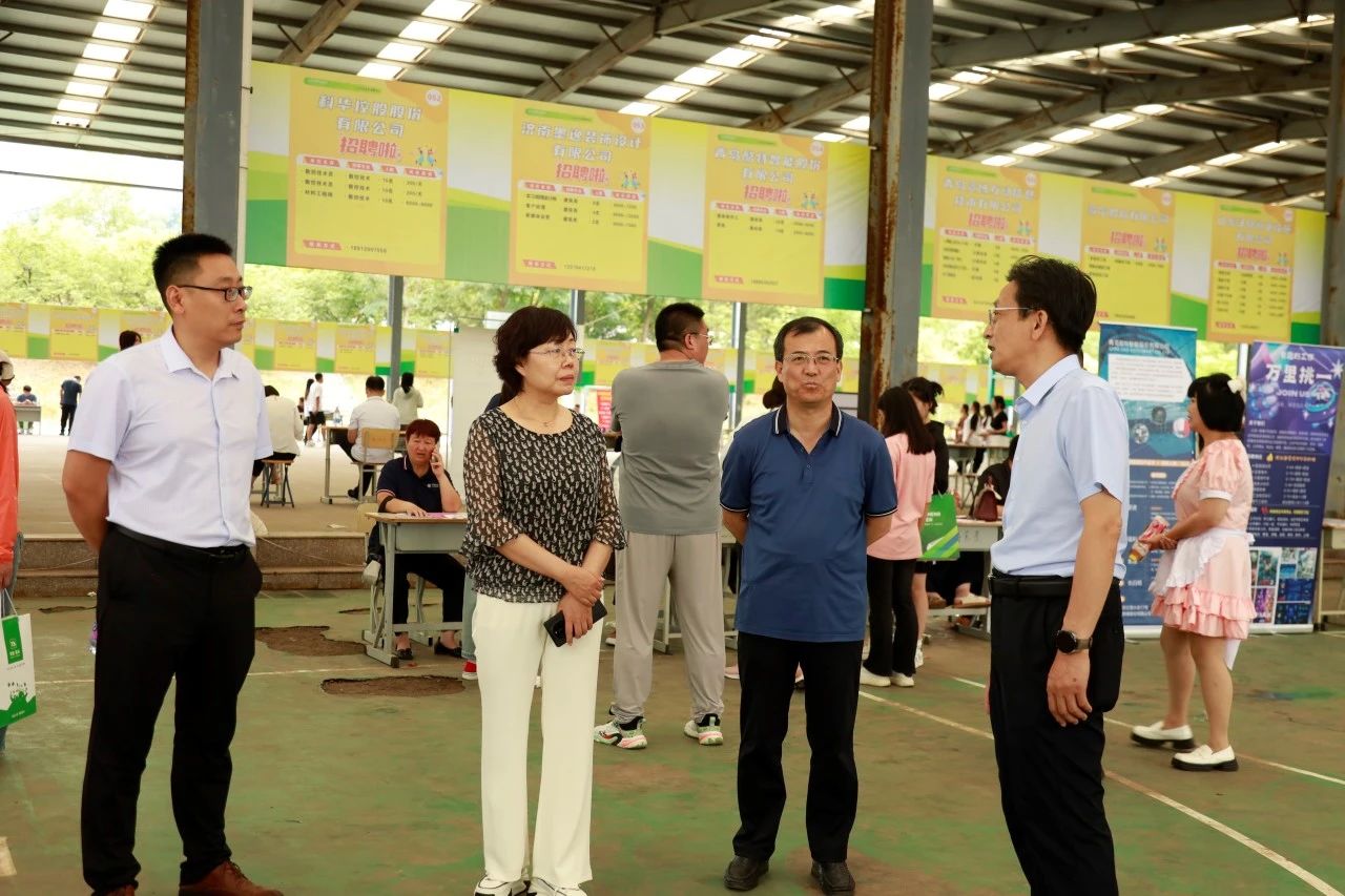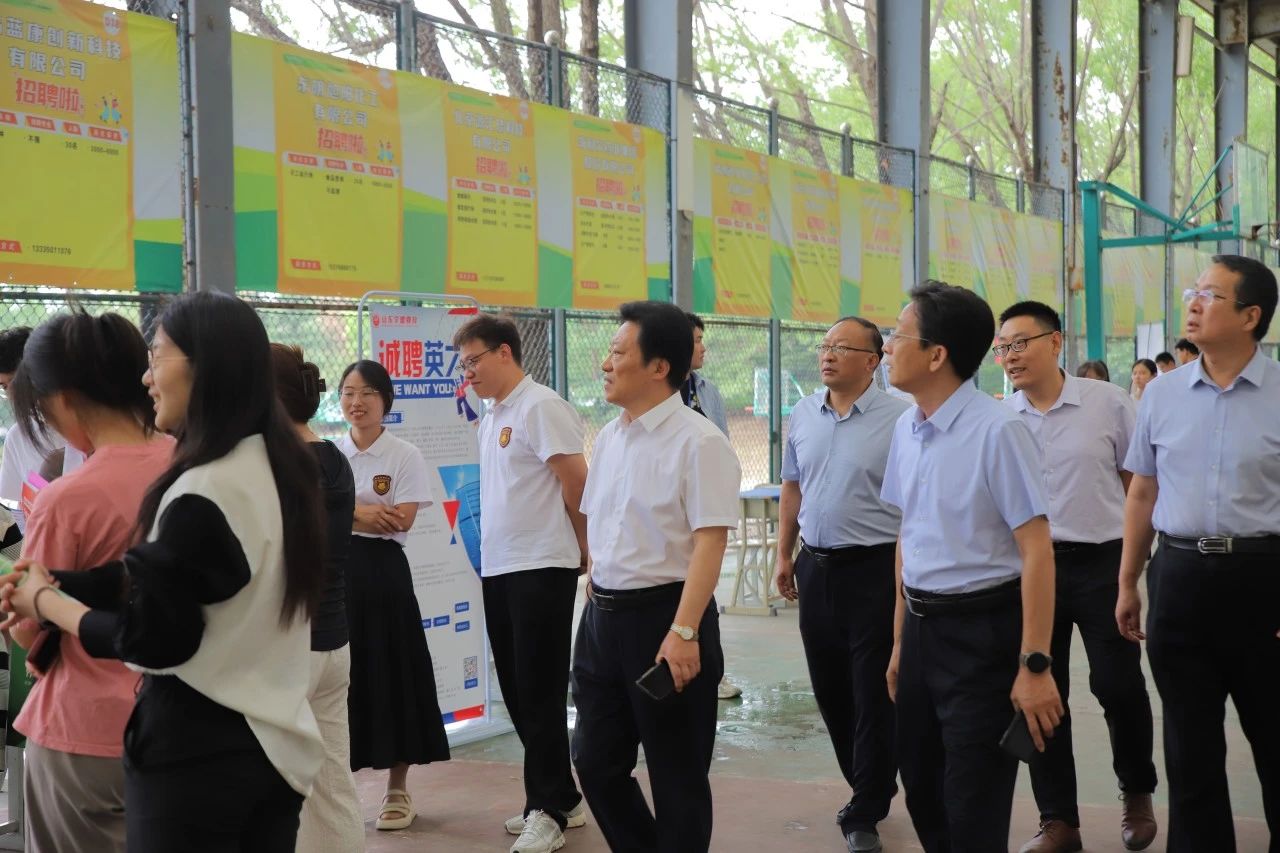 校长张绍秋、党委书记葛国文及诸城市委教育工委副书记王泽琪现场观摩,向参会的用人单位代表及工作人员表达了诚挚的问候与感谢。他们详细了解了企业的招聘进度和人才需求现状,并与毕业生进行了深入交流,了解学生的就业情况。