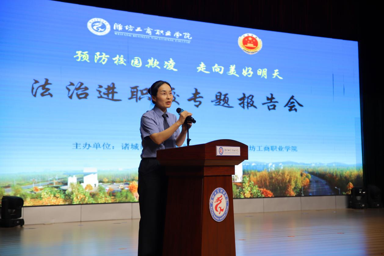 启动仪式后,与会人员观看反邪微电影《青春无邪》、网络安全宣传片《一路“象”北》。诸城市公安局新防大队副大队长袁伟作《防范电信网络诈骗》专题讲座;诸城市人民检察院检察官王香玲作《预防校园欺凌、走向美好明天的报告》专题讲座。