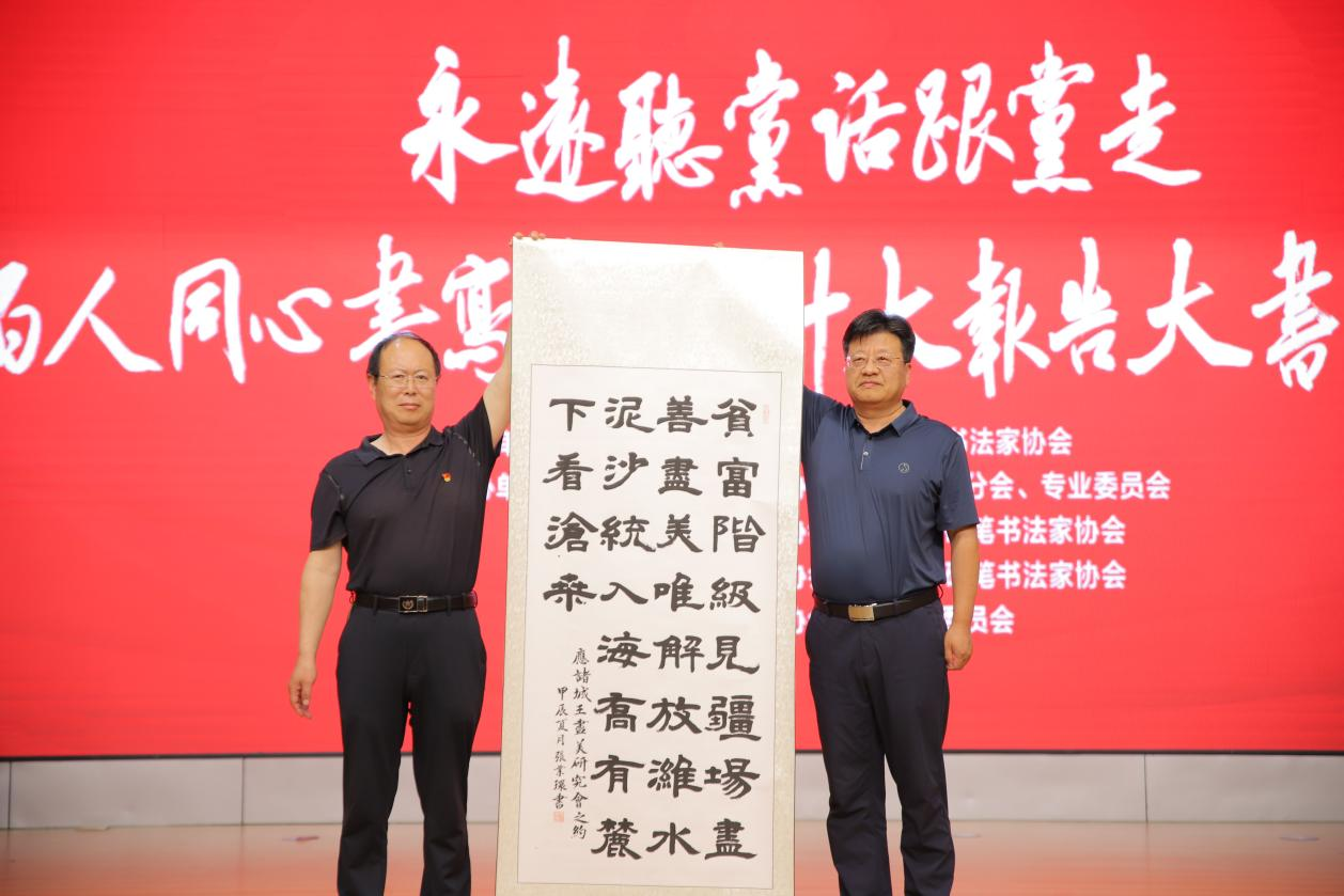 “永远听党话跟党走”百人同心书写党的二十大报告大书法展启动仪式由张绍秋校长宣布开展,旨在通过书法艺术形式,展现党的二十大精神。