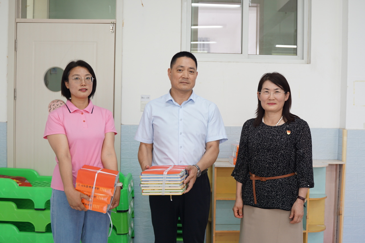 在这个愉快的节日氛围里,幼教艺术学院党支部书记杨倩倩、团支部书记苏茂刚,机电与汽车工程学院党支部书记王卫,智能信息学院团支部书记刘大芸,医养健康学院党支部书记张栋栋代表学校为密州街道中心幼儿园的小朋友们送上了精美书包、水杯等学习用品。马克思主义学院院长王桂珍还为小朋友们送去了精美图书。合作办学处处长侯国强与水发民生产业投资集团有限公司,山东魅力华洋教育科技集团有限公司,牙道医疗科技有限公司等校企合作企业,一起为师生送上了精美礼品和衷心地祝愿。学生代表将同学们捐献的学习用品作为礼物,向小朋友们表达了衷心的祝福。