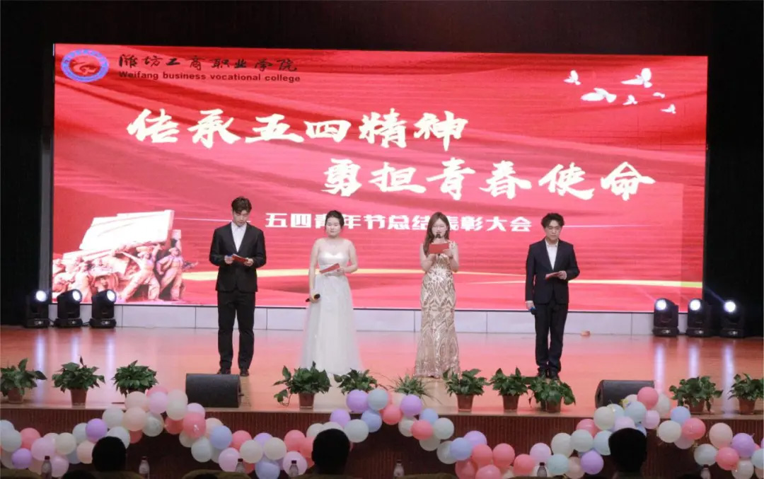为深入学习宣传贯彻党的二十大精神,赓续传承五四精神,向广大青年学子传递爱国、进步、民主、科学的前进方向,激发他们的青春活力和创新精神,展示青年学子的风采和才华,5月17日下午,以“传承五四精神、勇担青春使命”为主题的五四青年节总结表彰大会在图书信息楼第一报告厅成功举行。参加表彰大会的领导有党委常务副书记、执行校长郑志松 ,党委副书记副校长刘国庆,学生处团委老师和和二级学院党团书记,辅导员代表和学生代表。