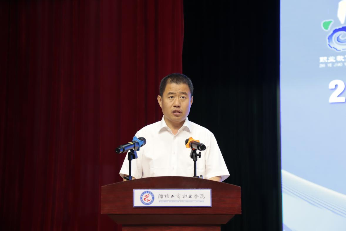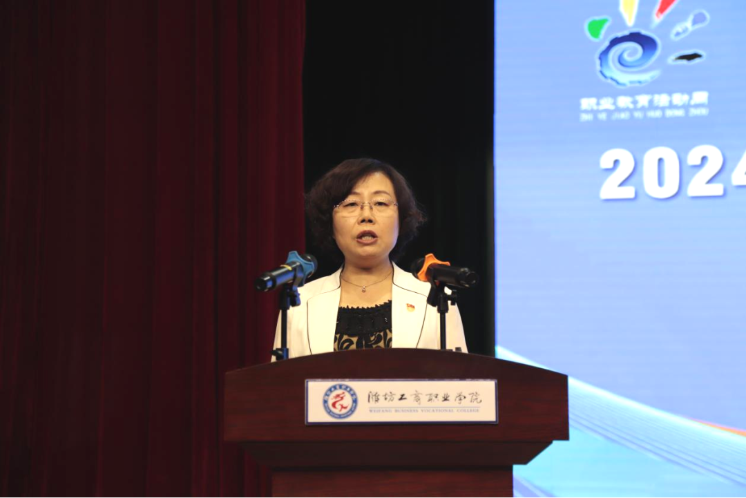 王妍妮在致辞中指出,潍坊市委市政府将职业教育置于突出位置,成立领导小组和专班,深化产教融合,推动高质量发展。诸城市职业教育创新务实,建立产教联合体,提升育人质量,增强造险功能。当前,职业教育需聚焦项目,深化融合创新,加强宣传,提升吸引力。