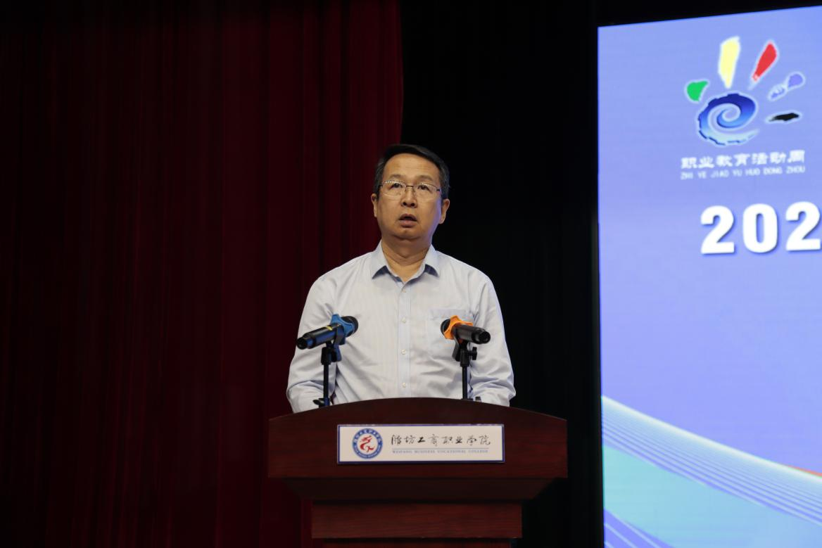 诸城市委常委、宣传部部长、市委教育工委书记、市总工会主席刁立武致辞。他在致辞中指出,职业教育活动周是国家弘扬劳动精神、展示职教成果的重要平台,市委市政府高度关注职教发展,建立联席会议制度,推动产教融合,希望社会各界支持职教,形成发展合力。