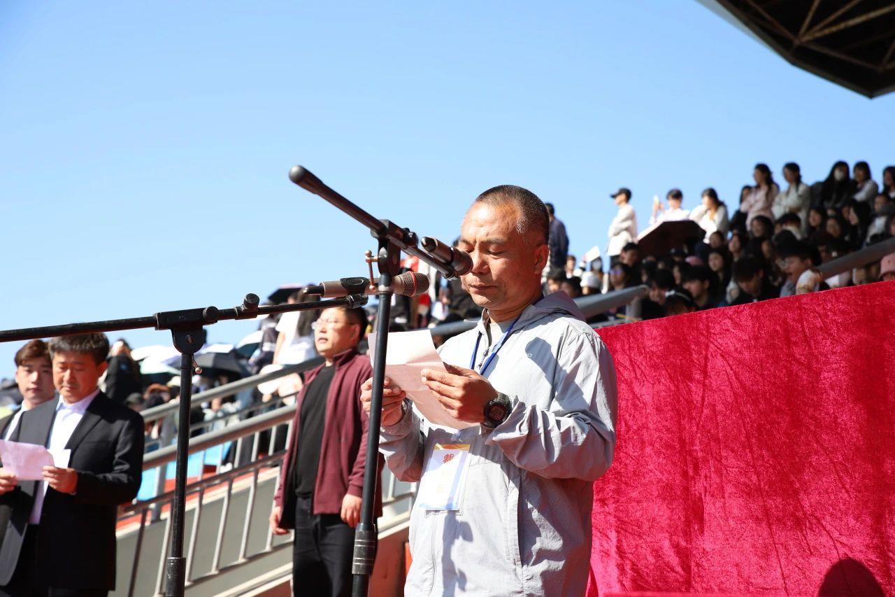 葛国文书记发表了热情洋溢的致辞,对过去一年学校在各个方面取得的优异成绩进行了回顾,并对未来的发展提出了殷切的期望。他强调了体育文化节对于推动学校体育工作、增强师生体质、促进校园文化建设的重要意义,并提出了三点希望和要求,鼓励全体师生积极参与,展现出良好的精神风貌。