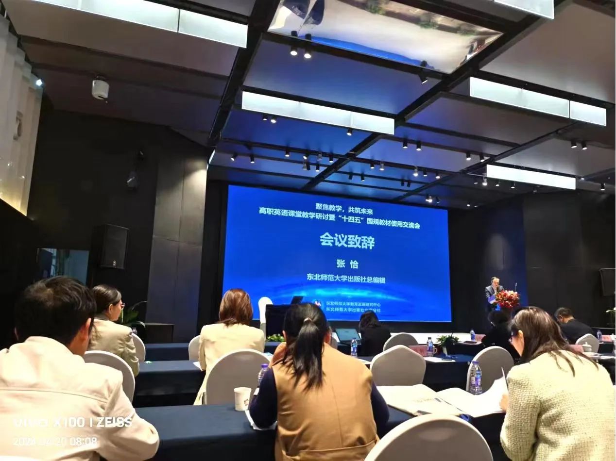 2024年4月19日至21日,东北师范大学教育发展研究中心在河南郑州举办“聚焦教学,共筑未来——高职英语课堂教学研讨暨‘十四五’国规教材使用交流会”研讨会。我校教师王恩美及团队成员张宝琴、张翠萍应邀参会。本次会议邀请《职通英语(第三版)》系列教材三位总主编——杨忠教授、安晓灿教授和王朝晖教授参会,全国近百名职业院校外国语学院院长、系主任及公共英语课程教学和教材建设专家、学者、教师参加了本次会议。会上,北京外国语大学林正军教授、广东省外语艺术职业学院袁洪教授和海南经贸职业学院韩大伟教授做了精彩的报告。