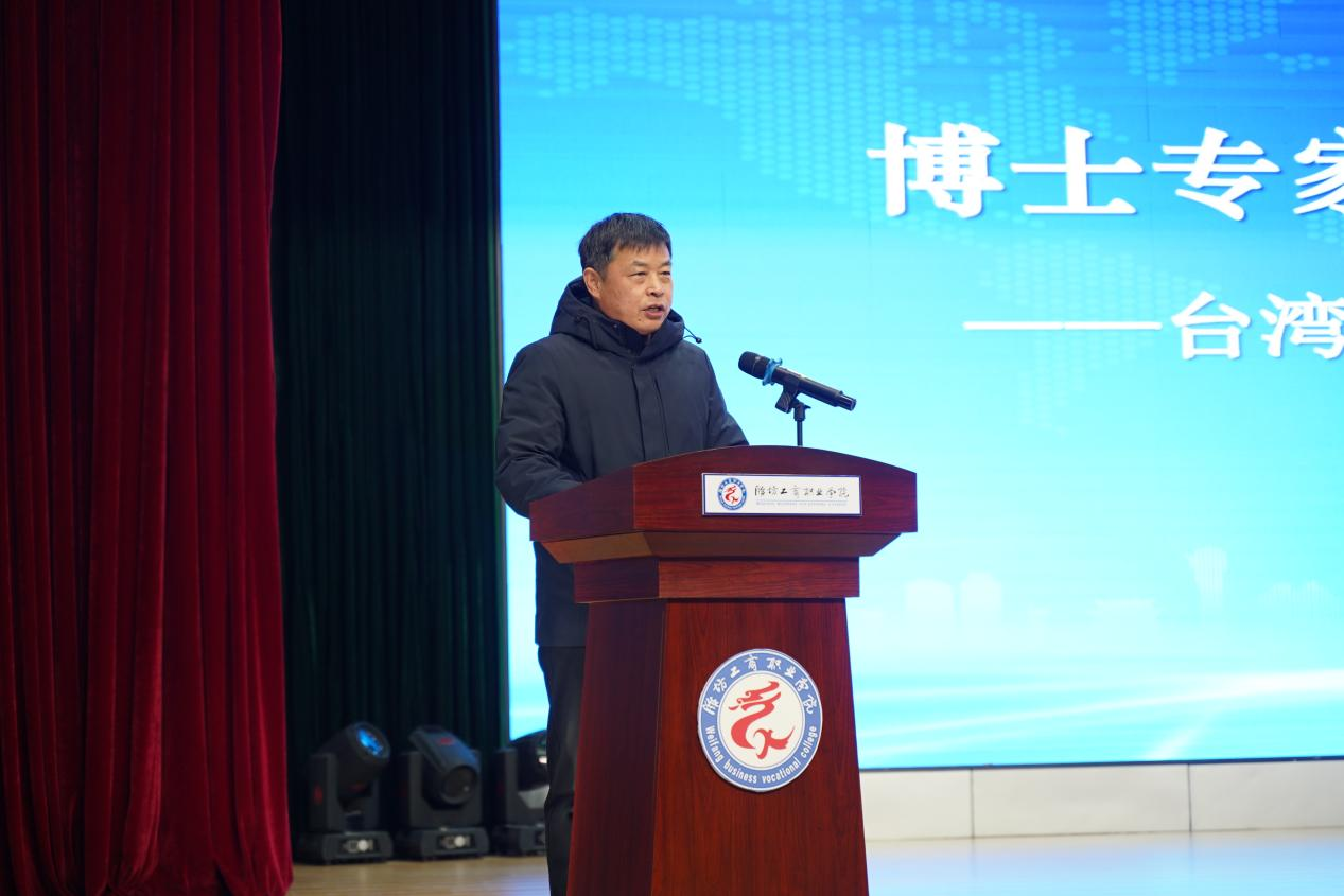 12月25日上午,“博士专家助企服务团——台湾博士专家诸城行活动”在我校举行,市委统战部分管日常工作的副部长、民宗局局长李子兵,我校校长张绍秋,执行校长、党委常务副书记郑志松,副校长、经济学校校长唐德良,博士专家助企服务团,相关单位、企业及我校400余名师生参加了此次活动。活动由市委组织部副部长、党员教育中心主任徐栋主持。