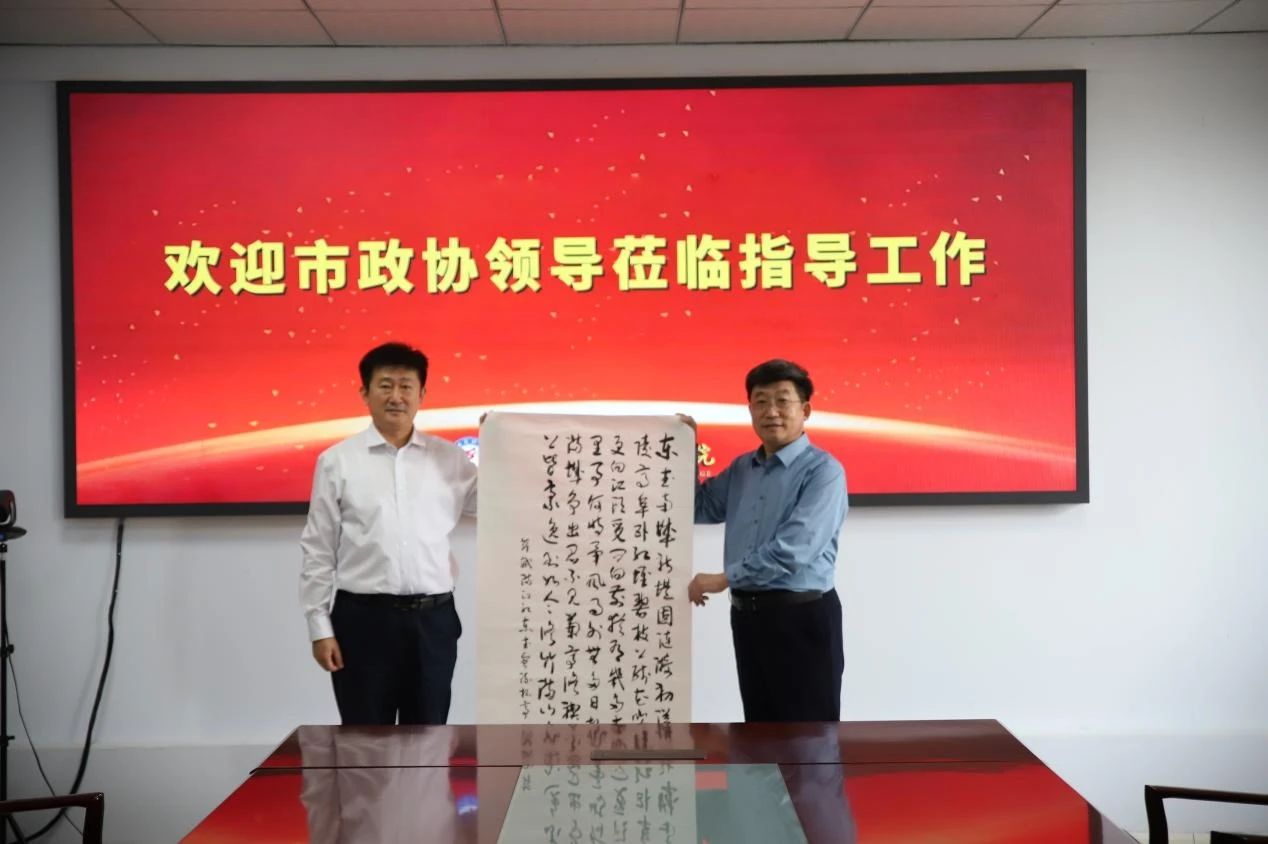 座谈会上市政协党组成员管常青对我校师生的专业水平和奉献精神给予充分的肯定,同时也对我校给予本次晚会的大力支持表达感谢,会议现场市政协党组成员管常青为我校两名指导教师颁发奖状并为我校赠送书法作品。
