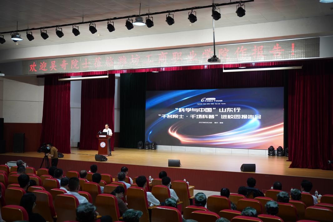 9月24日,中国科学院院士、深圳大学食品科学加工中心主任、香港中文大学伟伦化学荣休讲座教授吴奇来我校作“‘科学与中国‘山东行’千名院士·千场科普’行动在潍坊·诸城”走进校园首场科普报告。诸城市级领导班子成员,潍坊畜禽屠宰质量标准创新服务中心、市农业农村局主要负责同志,各镇街区分管负责同志,预制菜产业高质量发展工作领导小组部分成员单位分管负责同志,预制菜规上企业主要负责人等以及潍坊工商职业学院师生代表500余人参加报告会。