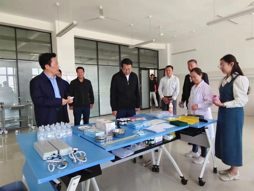 开幕式结束,学校领导及医养健康学院师生一起到尚文楼二楼基础护理实训室观看比赛。