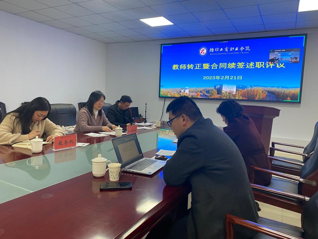 为进一步规范和推进师资队伍建设,促进青年教师高质量成长,学校举行2023年第一季度教师转正暨合同续签述职评议活动。活动由学校组织人事处牵头,成立集团领导、学院教务处、学生处及各二级学院领导班子等组成的评议小组,通过“德、能、勤、绩、廉”五个方面的现实表现,对新入职的青年教师进行考核评价。