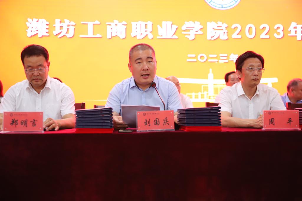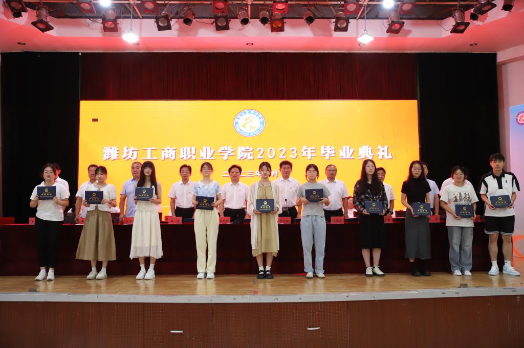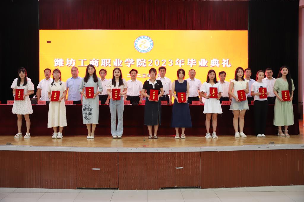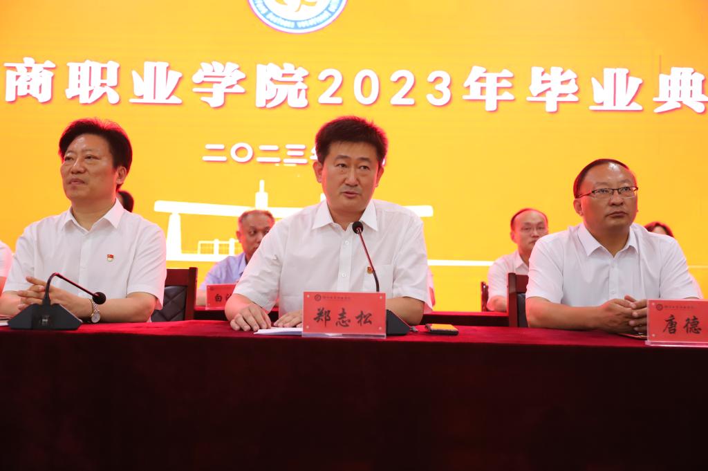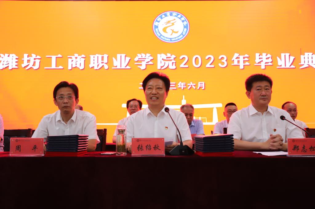 校长张绍秋发表致辞。他满怀深情地说,三年前,你们满怀着憧憬和理想来到了潍坊工商职业学院,在这里印记了你们奋发好学、苦练技能的身影,洒下了你们顽强拼搏的汗水,留下了你们惬意轻盈的步履,这个校园的一草一木、一楼一宇都记录下你们拔节孕穗、破茧成蝶的成长过程。面对你们的成长、成熟和成才,母校和老师们感到无比的骄傲和自豪。